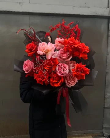 Букет "Назгум" из роз, пионовидных роз и гортензий