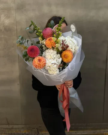 Букет "Джамиля" из роз, пионовидных роз и георгинов