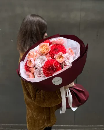 Букет "Джамиля" из роз, пионовидных роз и георгинов