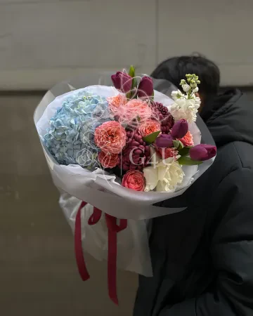 Букет "Cassandra" из тюльпанов, роз и гортензии