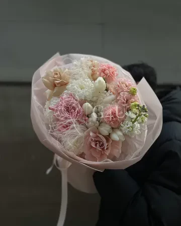 Букет "Keira" из роз, пионовидных роз и хризантем