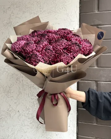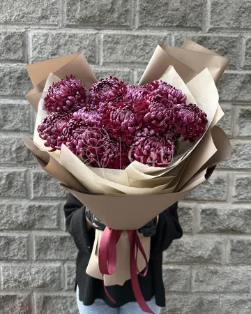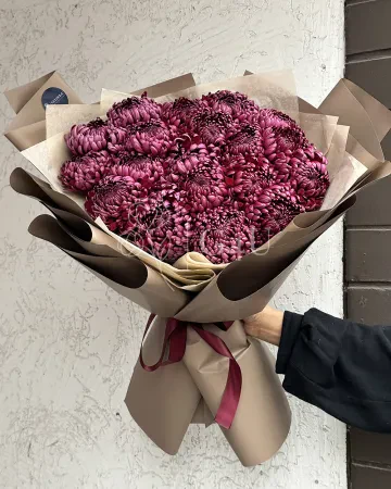 Букет из 17 хризантем в коричневом
