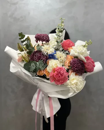 Букет "Виолетта" из спрей роз, пионов и гербер