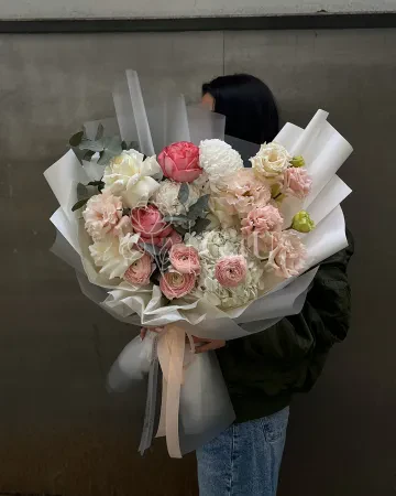 Букет "Алета" из роз, пионовидных роз и гортензий