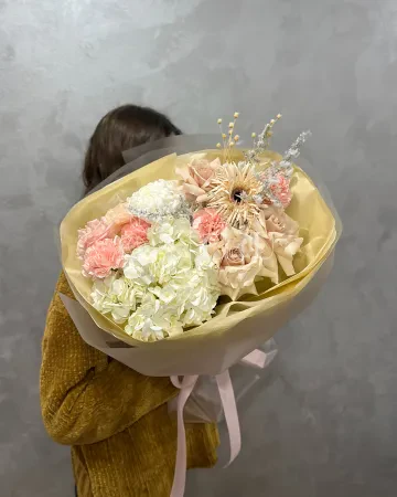 Букет "Нежность" из роз, гортензии и хризантем
