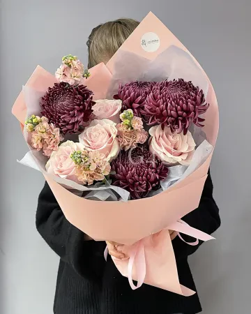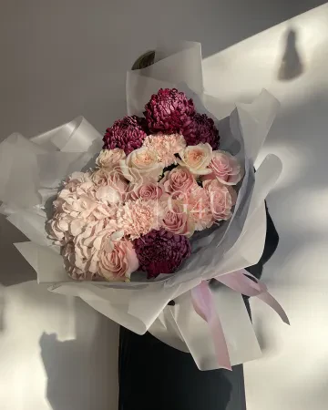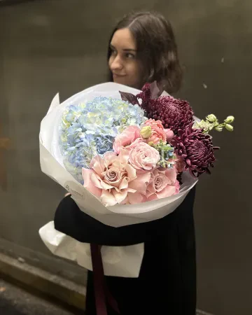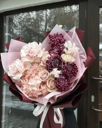 Букет "София" из гортензий, хризантем и роз