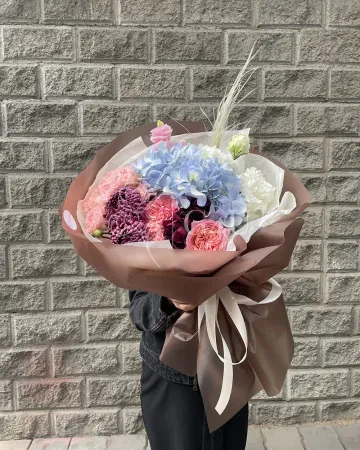 Букет "Гулхадиша" из пионовидных роз и хризантем