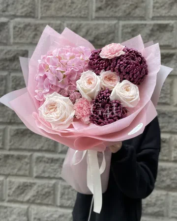 Букет "Гулхадиша" из пионовидных роз и хризантем
