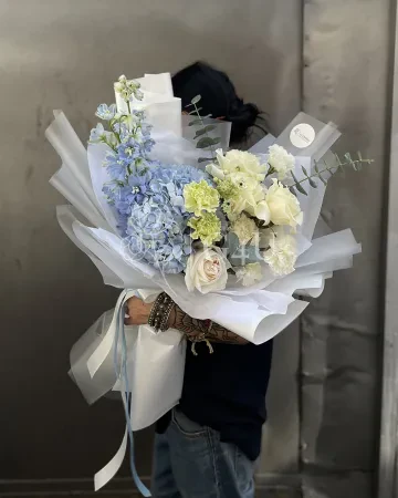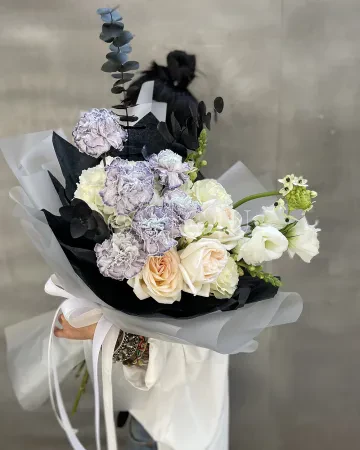 Букет "Сымбат" из гортензий, роз и пионовидных роз