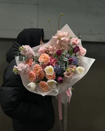 Букет "Genevieve" из роз, пионовидных роз и хризантем