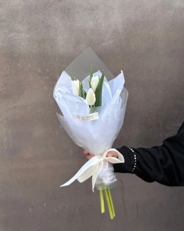 Моно букет из 3 белых тюльпанов