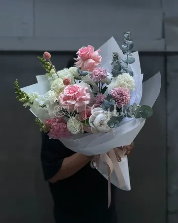 Букет "Карина" из роз, пионовидных роз и гвоздик