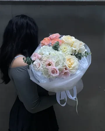 Букет "Цветочная симфония" из роз, пионовидных роз и хризантем