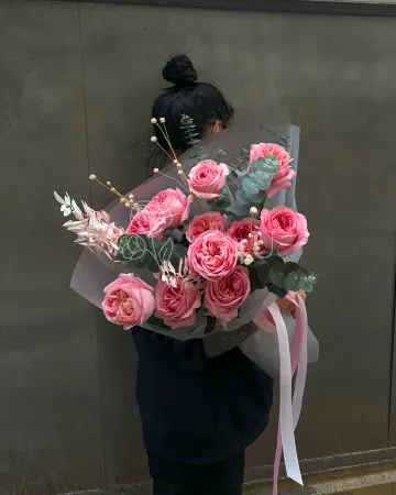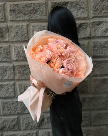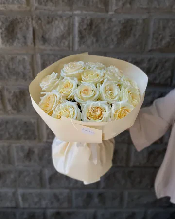 Моно букет из пионовидных роз с сухоцветами "Candlelight"