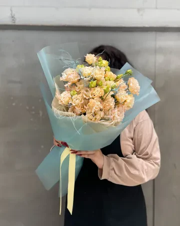 Букет "Зефир" из пионовидных роз с эвкалиптом