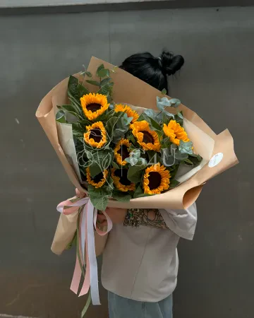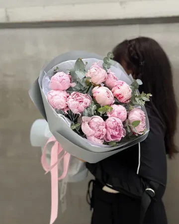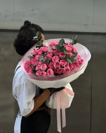 Моно букет из спрей роз с эвкалиптом "Аяна"