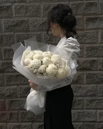 Букет из 15 белых пионов