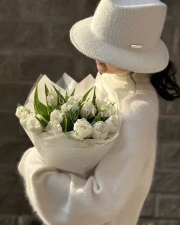 Букет из 15 белых тюльпанов