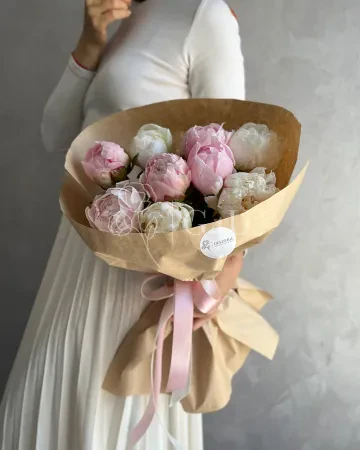 Букет из 9 местных микс пионов в крафте