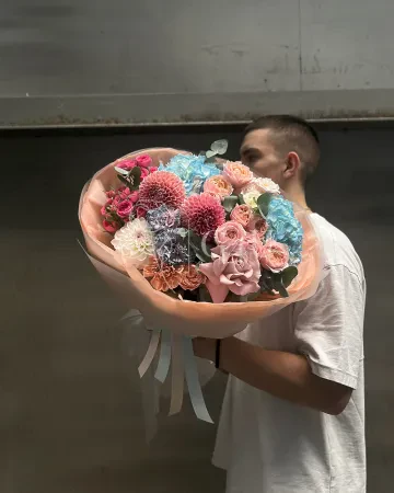- ✔️ Доставка цветов «День в День» с 8:00 до 00:00. Подробнее про условия доставки. Есть самовывоз в г. Алмата, ул. Сатпаева 7А/2.