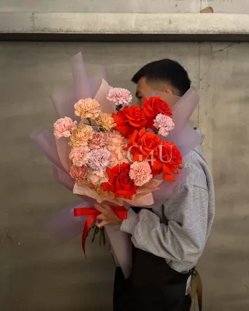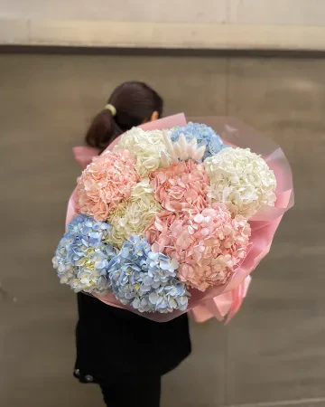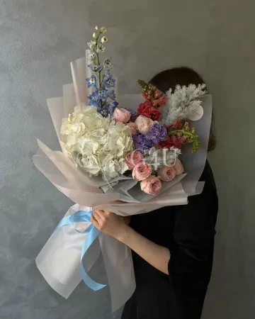 Букет "Менсулу" из роз, гортензии и гвоздик