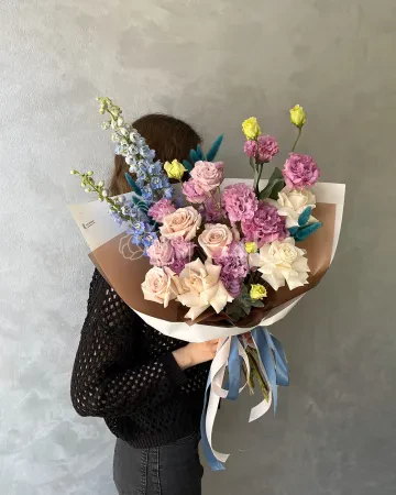 Букет "Толганай" из роз, пионовидных роз и лилий