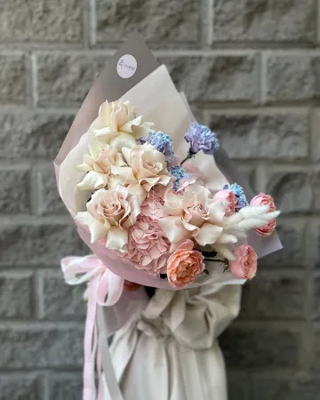 Букет "Хадиджа" из роз, пионовидных роз и гвоздик