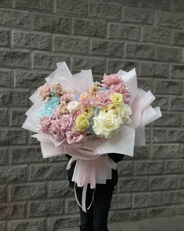 Букет "Ария" из роз, пионовидных роз и гортензии