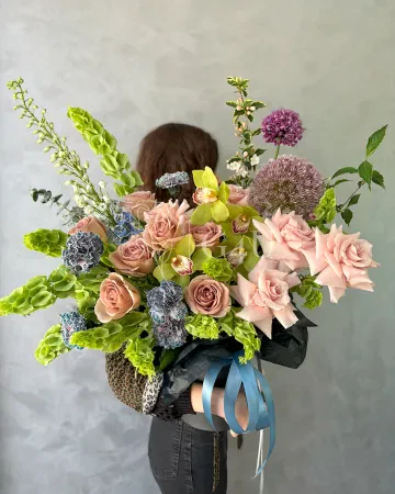 Букет "Мишель" из роз, молюцелл и гвоздик