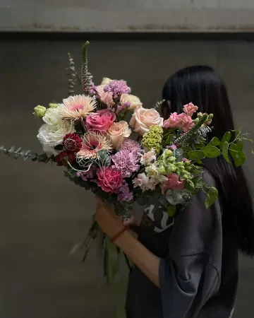 Букет "Leticia" из роз, пионовидных роз и хризантем