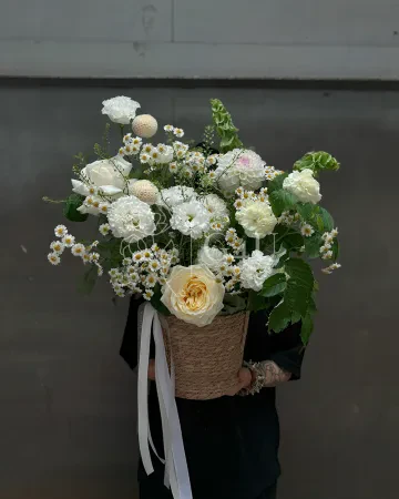 Букет "Безмятежность" из гортензии, роз и гвоздик