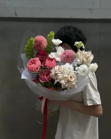 Букет "Талида" из роз, пионовидных роз и хризантем