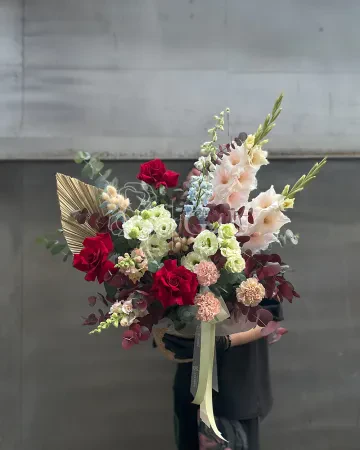 Букет "Madeline" из роз, гвоздик и гладиолусов