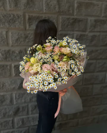 Букет "Мариша" из ромашек и лизиантусов