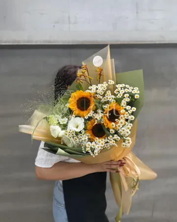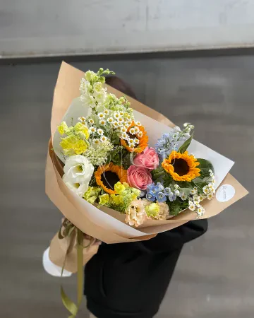 Букет "Летнее настроение" из подсолнухов и ромашек