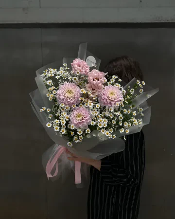 Букет "Айлин" из георгинов и ромашек