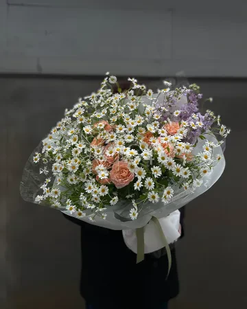 Букет "Thalassa" из спрей роз и ромашек
