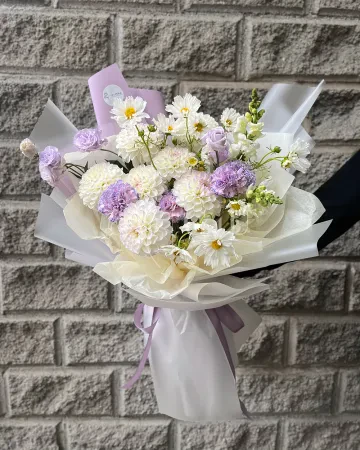 Букет "Летняя Нежность" из георгинов, гвоздик и ромашек