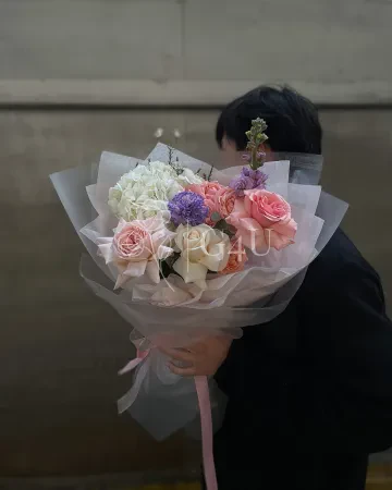 Букет "Manila" из роз, пионовидных роз и гортензии