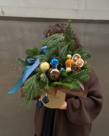Композиция в кашпо "Джорджиана" из роз, пионов и хризантем