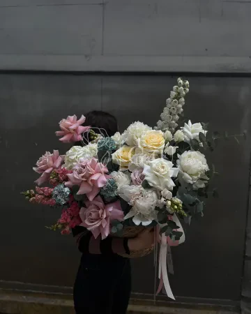 Букет "Айгуль" из пионов, гвоздик, гортензий и роз