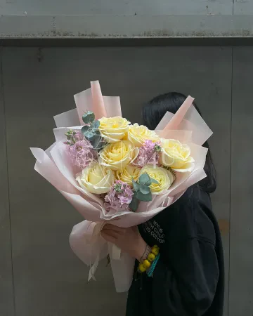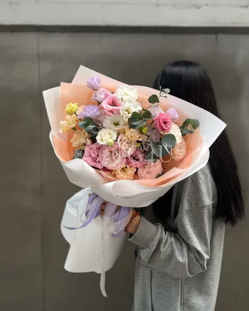 Букет "Missandei" из пионовидных роз и лизиантусов