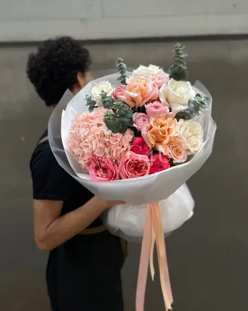 Букет "Весна" из гортензий, георгинов и роз