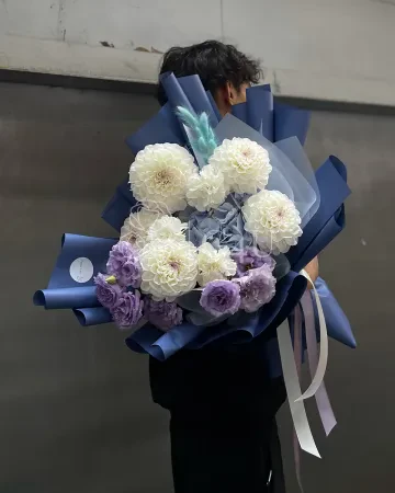Букет "Айман" из георгинов, гортензий и лизиантусов
