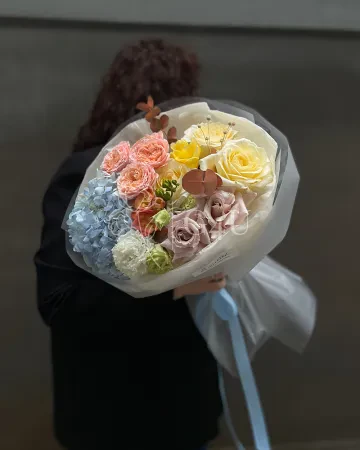 Букет "Aurelia" из роз, гортензии и эвкалипта