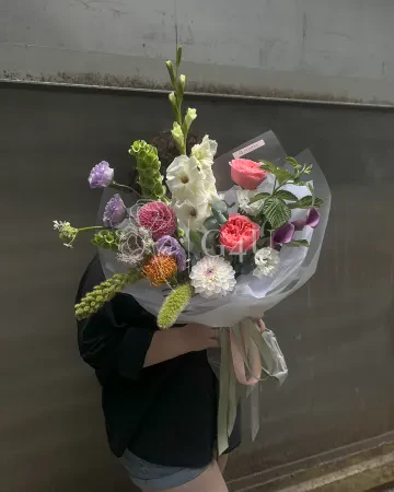 - ✔️ Доставка цветов «День в День» с 8:00 до 00:00. Подробнее про условия доставки. Есть самовывоз в г. Алмата, ул. Сатпаева 7А/2.
