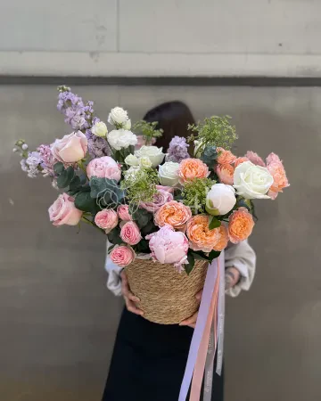 Букет "Викси" из пионов, пионовидных роз и спрей роз