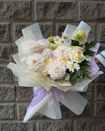 Букет “Вечность” из ромашек, георгинов и гвоздик