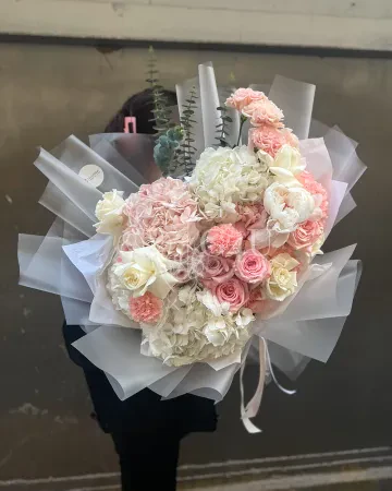 Букет "Айгуль" из пионов, гвоздик, гортензий и роз