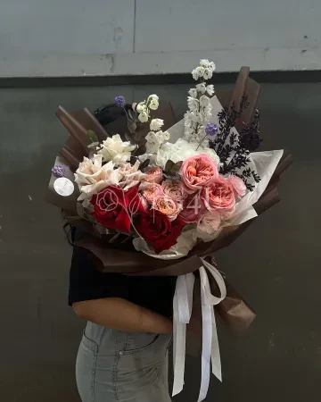 Букет "Владислава" из роз, пионовидных роз и спрей роз